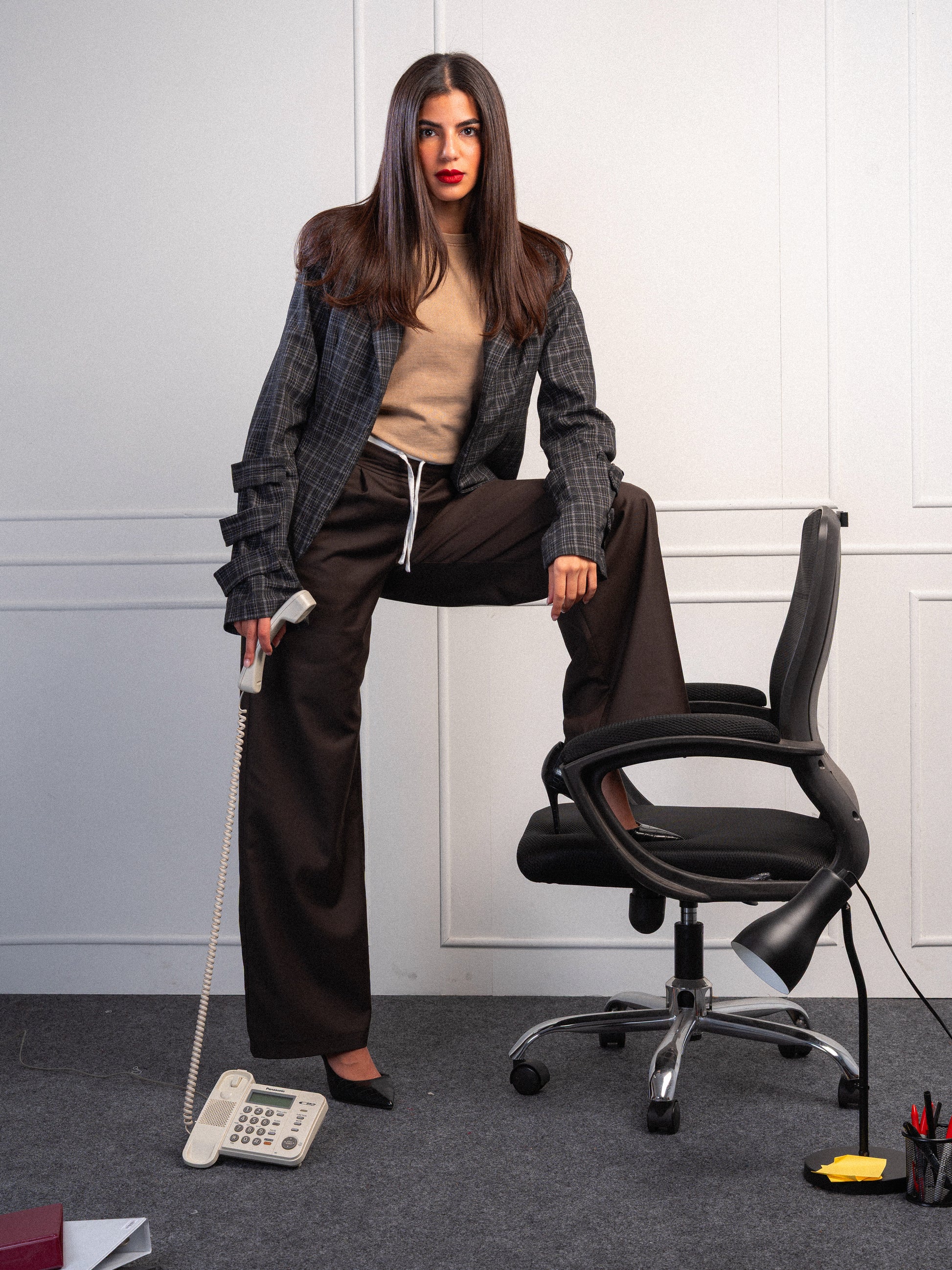 Our double-waisted trousers feature a layered waistband that adds shape and subtle edge while maintaining a clean, refined silhouette. Comfortable, flattering, and effortless to style — they elevate any outfit from simple to standout.